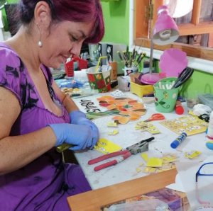 El proceso fue bastante enriquecedor ya que con cada mosaico que hacía aprendía algo nuevo y más me enamoraba de esta técnica, así, comienzo a tomar clases en el taller de Magaly Vargas ,aquí estuve por aproximadamente 4 años aprendiendo nuevas técnicas sobre este hermoso oficio.